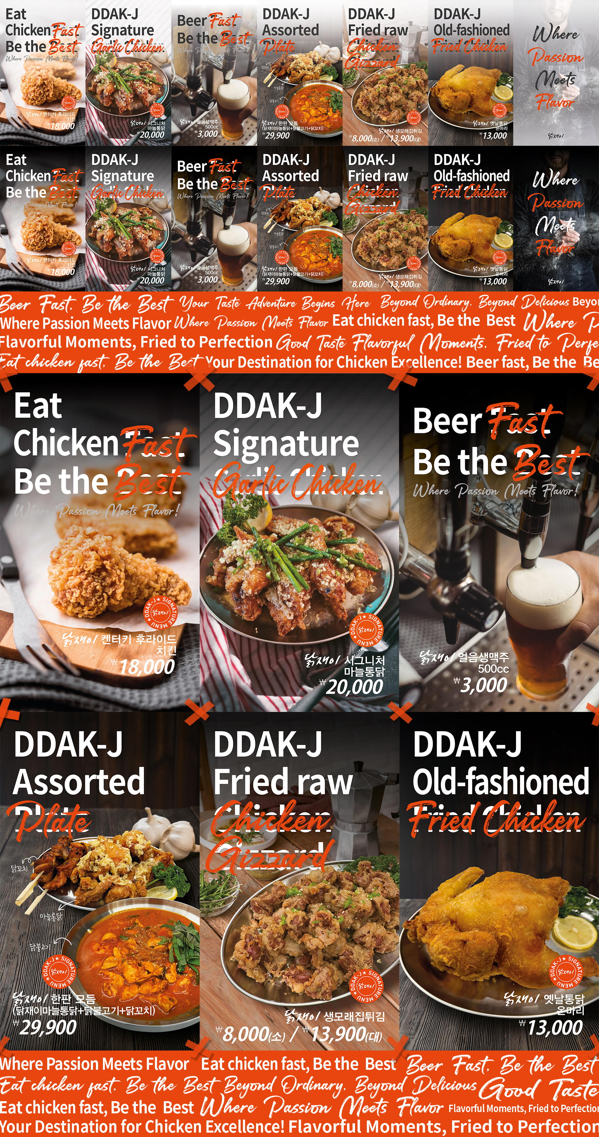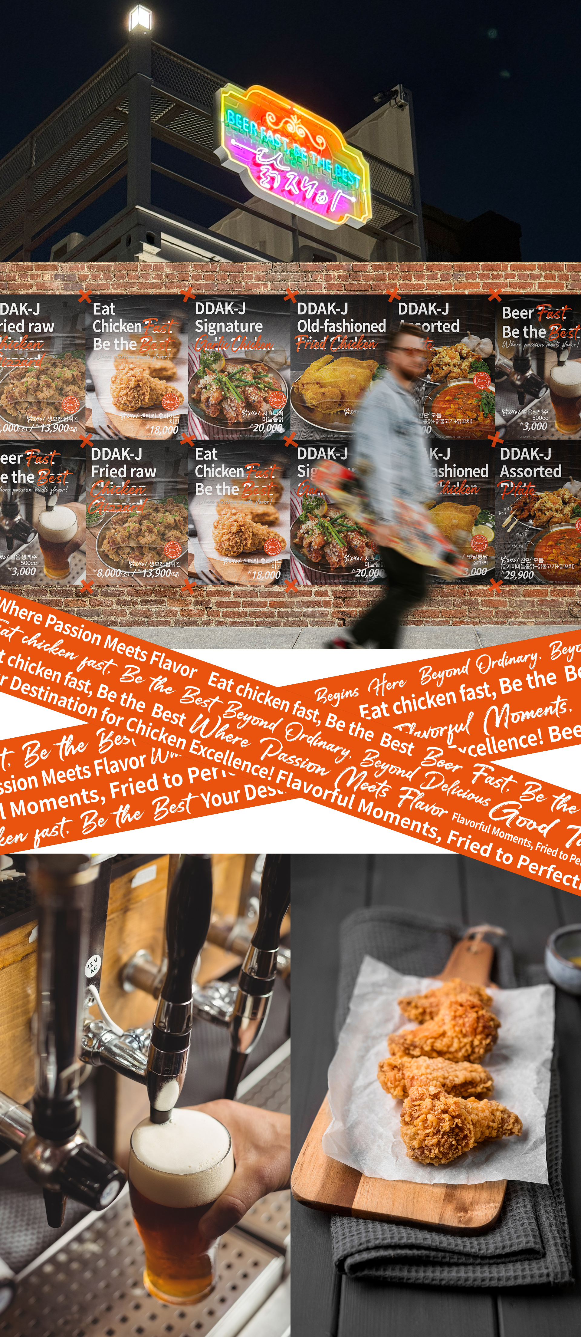 Studio Notos conducted a brand renewal for Ddak-J located in Sinam-dong, Daegu. Through several meetings and concept meetings with CEO Ddak-J and the director, we developed a design with the concept of “Where passion meet flavor.” We conducted shooting and design along with consulting in various fields, from the brand planning stage to brand strategy, visual strategy and identity design. For a systematic and integrated consulting brand design company, please visit Studio Notos.